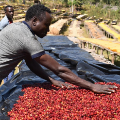 収穫された完熟チェリーはその日のうちにBatu Kobo Dry Stationへ運ばれ、アフリカンベッドの上で約2〜3週間、丁寧に攪拌されながら均一に乾燥が進むよう管理しています。