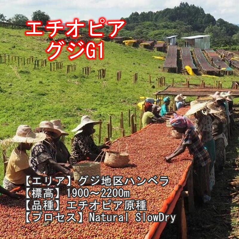 【エチオピア グジG1ナチュラル】 100g 中煎り